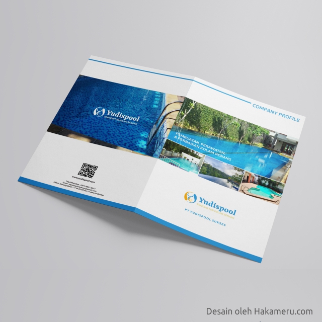 Jasa desain grafis online Hakameru mendapat pesanan untuk membuat desain company profile usaha kolam renang dari Yudispool sebuah perusahaan yang bergerak di bidang jasa kolam renang mulai dari pembuatan kolam renang, renovasi kolam renang, konsultan kolam renang, dan juga suplier bahan peralatan kolam renang